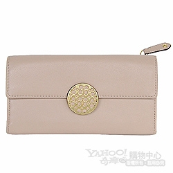 COACH 新款粉膚色全皮鏤刻金屬釦多格層長夾