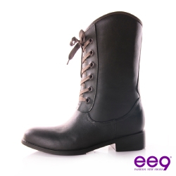 ee9 復古英倫~車線紋路一體成型中筒雨靴~沉穩綠