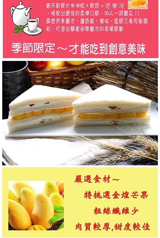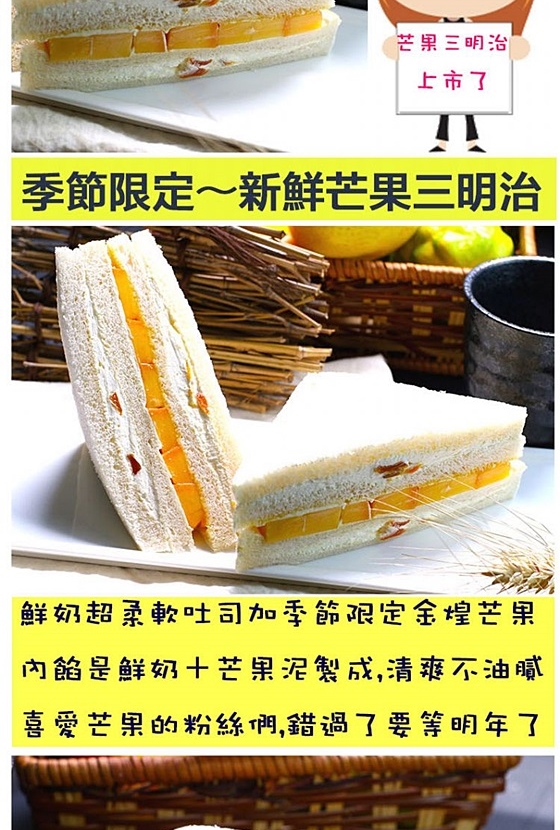 季節限定芒果三明治!消暑可口的滿滿芒果,讓人胃口大開,品嚐最甜美的飽足!