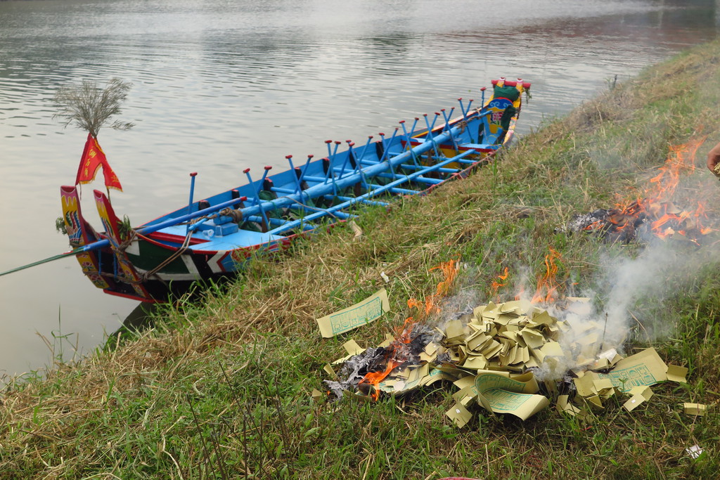 ▲船頭載著祭江時要獻給「老大公」的紙頭