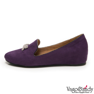 【VAGO&ANDY】金屬水鑽蝴蝶結內增高樂福鞋(紫)