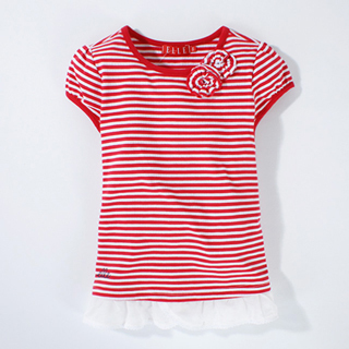 【ELLE】女孩 甜美立體花朵條紋上衣(紅)