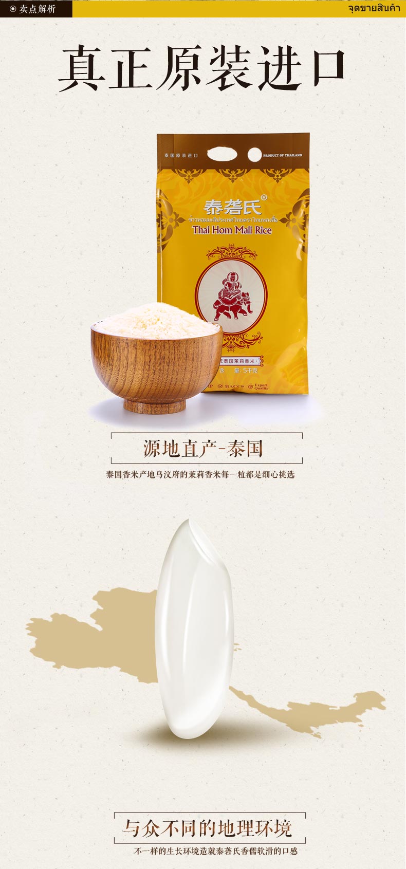 【天貓超市】泰國原裝進口泰礱氏 泰國茉莉香米 5kg/袋 大米年貨 - 520150291237