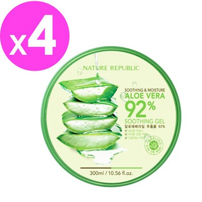 【Nature Republic】韓國 92%蘆薈補水保濕凝膠 300ml(4入)熱銷優惠MOMO購物網