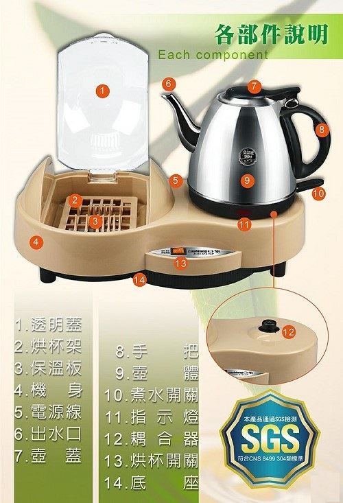 360 度旋轉分離式無線設計,食品級#304不鏽鋼,方便提取、倒水,烘杯置放溫馨推薦實用3C設計,方便杯具存取