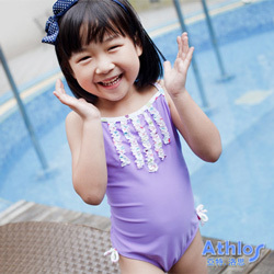 【ATHLOS】夢幻紫色抽皺女童連身泳衣