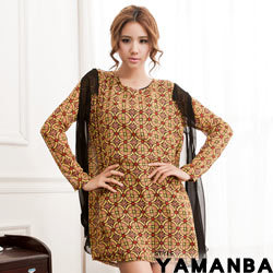 【Yamanba】復古普普風印花感黃色雪紡洋裝