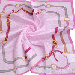 CELINE 繽紛圖騰LOGO皮穿鏈圖騰滾邊小帕巾(粉紅)