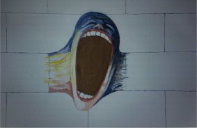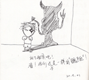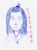 小芬!你看!你攪了什麼呀!竟把我的面弄成這樣!你叫我怎樣見人啊!可惡!可惡! 好一個老鼠鼻花面貓!可惡!可惡! (P.S 今天的自畫像,紅色的是毀容見正。)