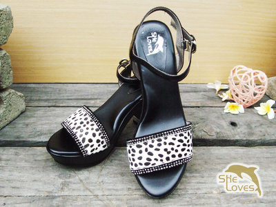 • 【sheloves 喜樂絲】豹紋後跟金釦粗跟涼鞋