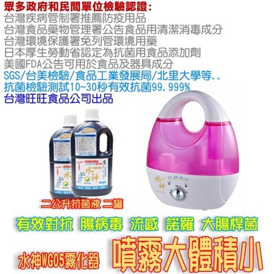 【旺旺-水神】WG05空間清靜霧化機+4公升瓶裝除臭抗菌液(對抗腸病毒、流感、諾羅、過敏原) 早就是暢銷的明星