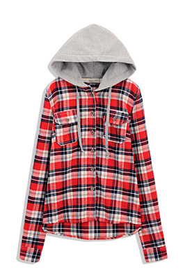 經典格紋連帽率性合身毛料長袖襯衫-女 51306_7228 更多詳細的資訊這邊請:
