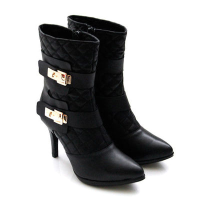 - 鞋款品名:BIS-VITAL 進口油蠟皮革拼接菱格針織香奈兒款高跟短靴