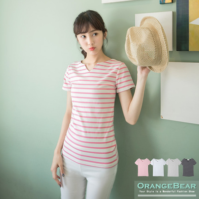 0827新品 清新百搭~小V領條紋舒適感上衣.4色
