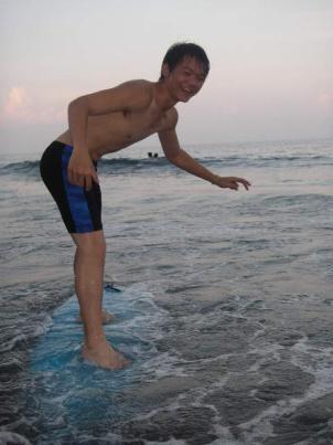 中午ㄚ 就聽我表哥要跟他朋友去沙灘玩衝浪 我就說我也去~ 哈哈 後來ㄚ 就出發了 五個人擠一台車 共兩台車 衝阿0。0。。 我就沿路聽歌 看風景 經過雪...