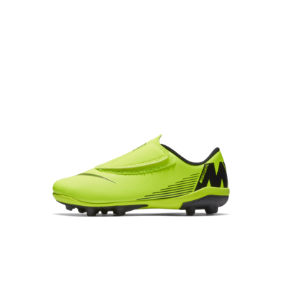 Nike Jr. Mercurial Vapor XII Club 幼/小童多種場地足球釘鞋結合柔軟緩震與無鞋帶設計,打造易穿脫舒適感以及球場上的支撐機能。由於混用了 2 種不同鞋釘,在天然或人工長草草皮等多種表面上都能提供優異抓地力。