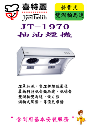 ~~~這個~~~ 【喜特麗】JT-1970 斜背式排油煙機(70CM) 好像還不錯喔!!【喜特麗】JT-1970 斜背式排油煙機(70CM)我很喜歡,買來試試看!!! ★★★