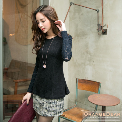 質感仿毛料mix布蕾絲連袖,混搭出優雅的淑女style!