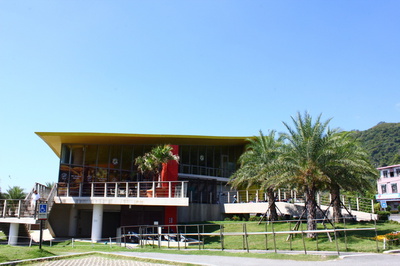 宜蘭行的第一站我們先來到外澳服務區(是嗎?這裡是外澳服務區嗎?)這棟鮮黃色外型的建築物真得很搶眼,當然蘭陽博物館外型更搶眼不過我沒有計畫要去蘭陽博物館,開車經過時有瞄了好幾眼,蘭陽博物館真得超美的~不過我是還沒有計畫要去啦我怕寶寶太聒噪會去吵到別人,盡量都沒有排室內展覽的活動!這種靜態活動不適合野馬啊~
