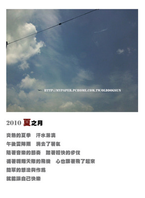 炎熱的夏季 汗水淋漓 午後雷陣雨 消去了暑氣隨著音樂的節奏 踏著輕快的步伐循著翱翔天際的飛機 心也跟著飛了起來簡單的想法與作為就能讓自己快樂