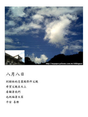 八月八日到樹林的忠靈殿祭拜父親希望父親在天上看顧著我們也祝福著大家平安 喜樂