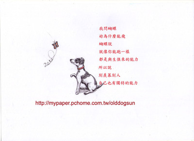 [我問蝴蝶 妳為什麼能飛 蝴蝶說 就像你能跑一樣 都是與生俱來的能力 所以說 別羨慕別人 自己也有獨特的能力] 新的一年, 希望能夠有機會, 發...