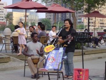 週日高雄醫院探病行,傍晚時分載著家人來到愛河畔。整治後的愛河,不一樣的黑水,不一樣的風華,高雄人不同往日的假日河邊型態...街頭藝人在貨櫃展場、在城市光廊、在愛河畔,用力畫、用力唱、用力掏盡所有....