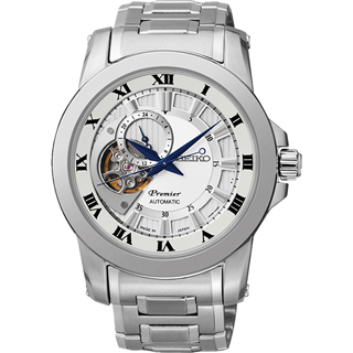 推薦心得~【SEIKO】Premier 心跳鏤空視窗機械腕錶-銀-40mm(4R39-00L0S)