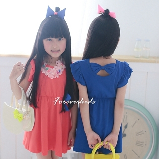 你一定要來看看【童心未泯】女童-糖果微甜小露背兩色長上衣-小洋裝100-140(藍-西瓜紅)~~