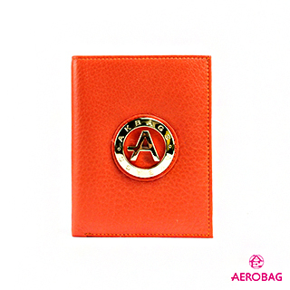 你一定要來看看【AEROBAG】旅行趣 精美真皮大A金屬標誌護照萬用夾(粉橘)~~