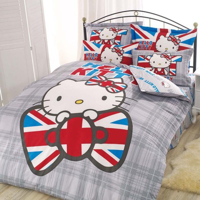 最近在網拍看到【享夢城堡】HELLO KITTY英倫風系列(單人床包兩用被組-灰),