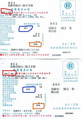 這是我們公寓(15家)二月份(100.12及101.01用電)公設電費,與四月份(101.02及101.03用電)公設電費,全公寓公設有十二盞燈,將其中三盞換裝LED燈的結果。 省電95度,省錢52...
