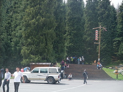 0520 早上出門搭公交73路至北郊客運站轉阜康至天池,公交車上與一維族婦女閒聊,並將一隻帶LED小燈精緻的筆,是臨旅遊時,去小學同學秀傑 買旅遊保險時送給我,轉贈給她以為紀念。 天池海拔1...