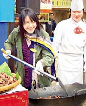 林嘉欣當街炒栗子助內地窮家庭 (1.19.04)