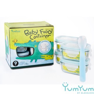 CP值評比高 婦幼 彌月 送禮好物【Glasslock YumYum】玻璃副食品保鮮盒+矽膠匙5件組(長方形) 發熱衣比