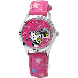 【Hello Kitty】國際版寧靜夜空星星指針皮革童錶桃紅色29mm(HKFR1252-04C) 商品網址: http://www.momoshop.com.tw/goods/GoodsDetail...