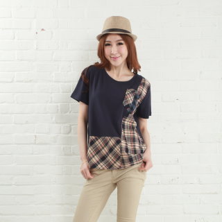進入 MOMO 購物網官網CP 值非常高的[【AYH】英倫格紋拼接素色上衣(深藍色) ]