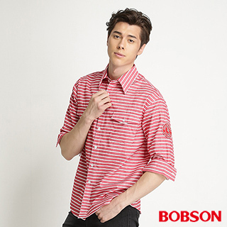 進入 MOMO 購物網官網CP 值非常高的[【BOBSON】男款刷毛條紋長袖襯衫(紅34004-13) ]