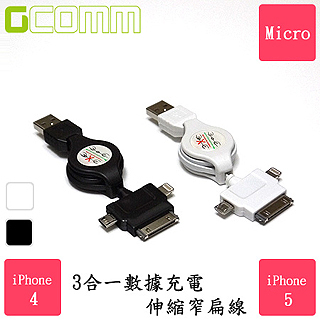 【GCOMM】iPhone5-4 iPad HTC-Samsung-Micro 3合1伸縮線(黑白可選)