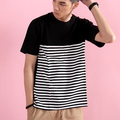 【實用商品介紹】休閒下擺條紋純棉短T(黑色) 271 比價撿便宜網路熱銷