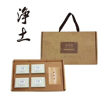 愛草皂 淨土純真四入禮盒 (贈原木皂盤)