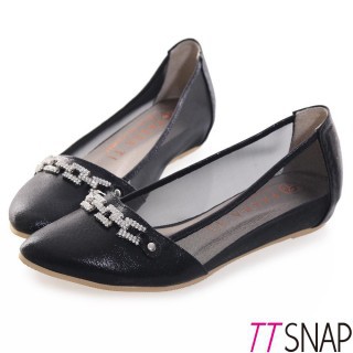 服務這麼優,當然在網路購物最好啦~~你一定要來看看【TTSNAP】內增高-MIT方釦排鑽尖頭透膚網紗平底鞋(黑)~~