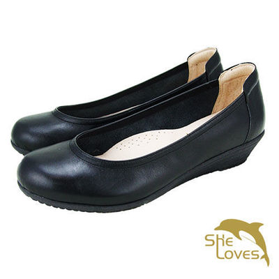 服務這麼優,當然在網路購物最好啦~~你一定要來看看【SHELOVES 喜樂絲】2W14001-黑色素面簡約淑女氣墊增高包鞋~~