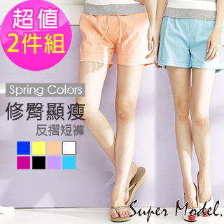 momo,momo購物台,momo購物網>【名模衣櫃】組-修臀顯瘦綁帶.反折短褲2件組-共8組(M-XXL可選擇)