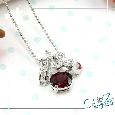 情人節推薦-瘋狂推薦momo購物-【伊飾炫銀】絲帶風彩*榴紅純銀項鍊-白色情人節首選
