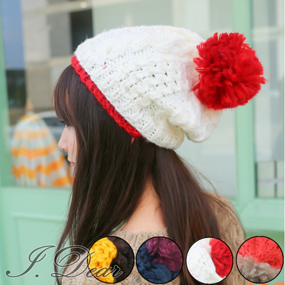 情人節推薦-瘋狂推薦momo購物-【I.Dear】韓系秋冬保暖帽 - 潮流撞色毛線球帽(4色)-白色情人節首選