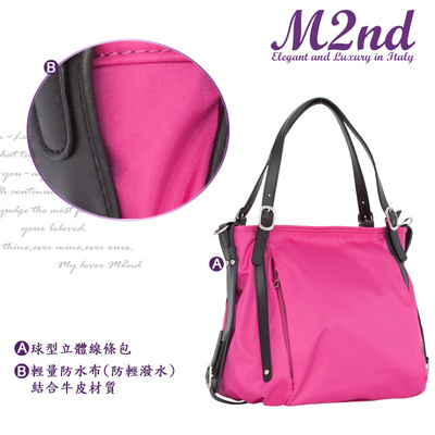 情人節推薦-瘋狂推薦momo購物-【M2nd】馬德里牛皮防水布包(桃紅)-白色情人節首選