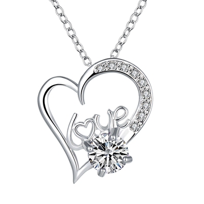 情人節推薦-瘋狂推薦momo購物-【Aphrodite愛芙晶鑽】LOVE字樣愛心美鑽造型925銀項鍊(925銀項鍊)-白