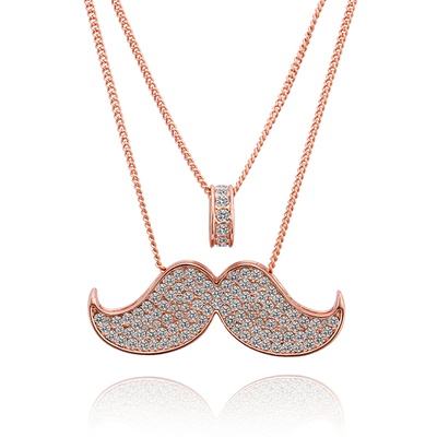 情人節推薦-瘋狂推薦momo購物-【Aphrodite愛芙晶鑽】可愛小鬍子美鑽造型18K項鍊 長款毛衣鍊(玫瑰金色)-白
