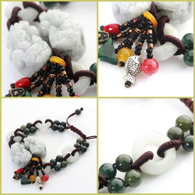 年終尾牙推薦-momo購物網推薦-【JIN YANG】花開富貴A貨翡翠雙貔貅手鍊(雙貔貅)-辦年貨推薦